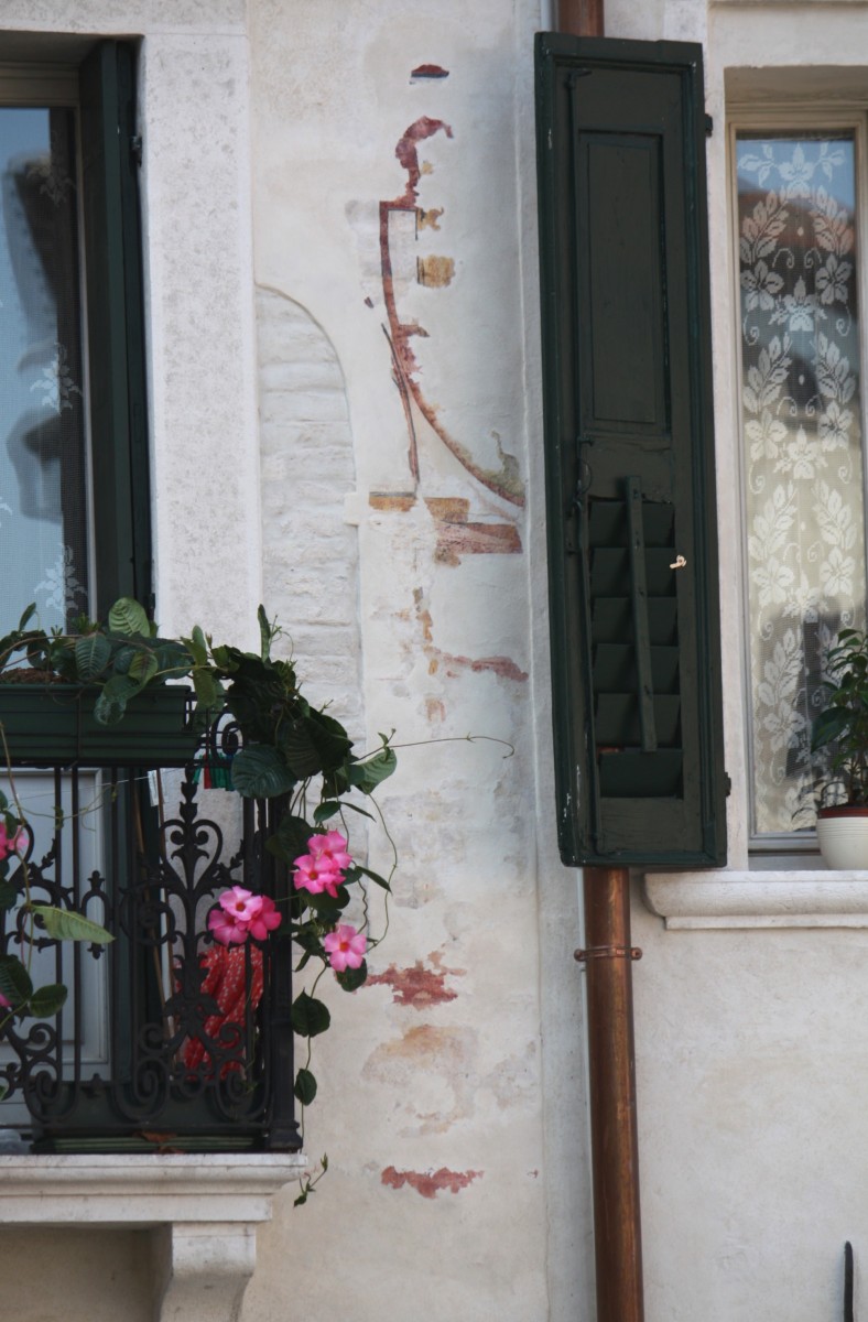 Sulla facciata sono presenti quattro diverse tipologie d’intonaco: dei secoli XV, XVI, XVII e XIX.