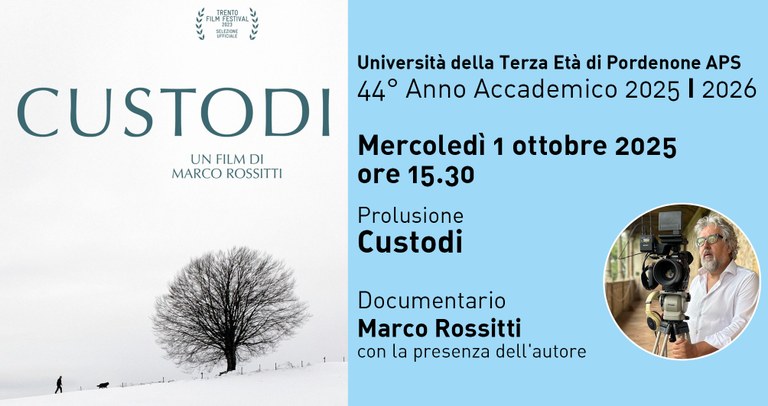 Il nuovo anno accademico dell’Università della Terza Età di Pordenone Aps si aprirà mercoledì 1 ottobre, ore 15.30, con la proiezione del film “Custodi”, di Marco Rossitti. Il regista ha così spiegato il contenuto del suo lavoro: “I luoghi appartengono a chi li abita, ovvero a chi ne ha cura e li sente essenziali alla propria identità. In latino habitare significa ‘avere abitualmente’. Nulla a che fare con la proprietà o il possesso: è costruire, difendere, custodire. I veri custodi non esibiscono il loro operato. Li riconosci per la profonda padronanza del territorio nel quale vivono e lavorano, acquisita dapprima attraverso la lezione dei padri, poi con l’osservazione attenta, la dedizione, la fatica: una consapevolezza dei luoghi intagliata nel volto e nelle mani, riflessa nella voce e nello sguardo, scolpita nella memoria e nell’anima. Negli anni, incontrando in diverse regioni del Nord Italia Cecilia, Bepo, Egidio, Miriam, Mauro, Konrad, Erika, Gianfranco, Tobia, Xiaolei, Roberto, Matteo, Massimo, ho capito che si può essere custodi sotto le spinte e per le motivazioni più diverse: per istinto, elezione, passione, tradizione, lungimiranza, destino, vocazione, scelta”.