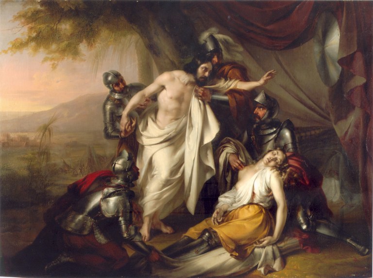 Il dipinto di Michelangelo Grigoletti (1801-1870) "Tancredi visita la salma di Clorinda", realizzato per il collezionista triestino Leone Hierschel, raffigura un episodio descritto nella “Gerusalemme Liberata” di Torquato Tasso e costituisce un importante e pregevole documento della sua produzione nell’ambito della pittura storico-romantica, di cui il museo cittadino conserva solo bozzetti e disegni preparatori.